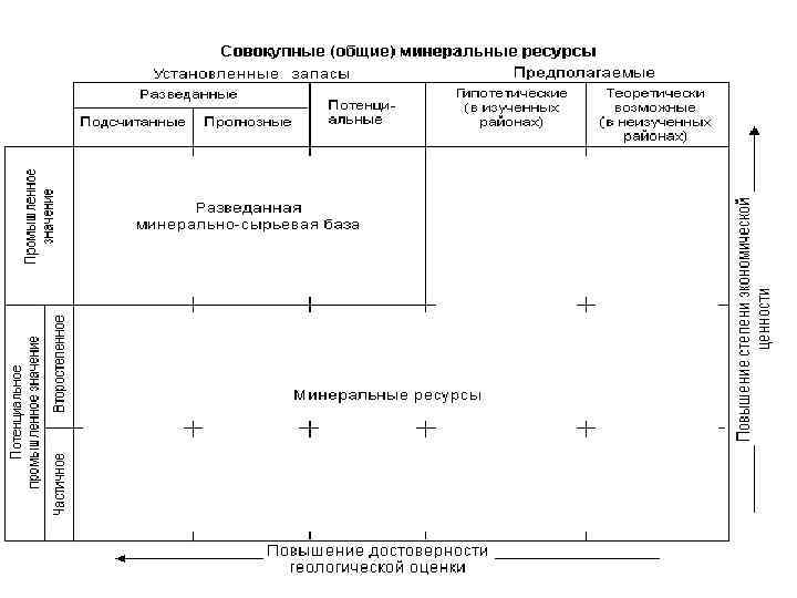 Минеральные ресурсы • Полезные ископаемые природных геологических процессах образуют в природе скопления, которые называют месторождениями, если количество полезного ископаемого экономически и технологически целесообразно добывать. Широко используются в географии и экономике понятия "минеральные ресурсы" и "минеральное сырье", которые относят к месторождениям полезных ископаемых, установленных на определенной территории - стране, крае, области, районе. Минеральные ресурсы - конкретные месторождения полезных ископаемых для определенной территории, запасы которых прогнозированы, теоретически подсчитаны. Минеральное сырье - это минеральные ресурсы (месторождения полезных ископаемых) на определенной территории, запасы которых разведаны и точно установлены. Различные виды минерального сырья входят в минеральносырьевую базу района, области, страны