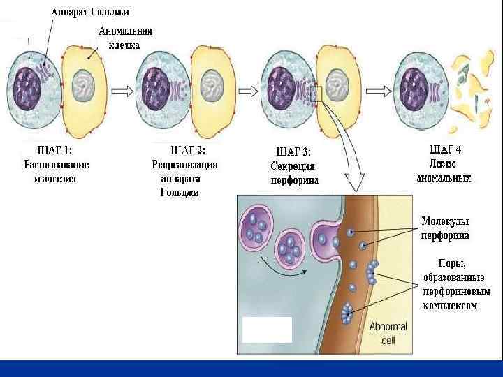 Лимфоциты-киллеры атакуют измененную собственную клетку лизис