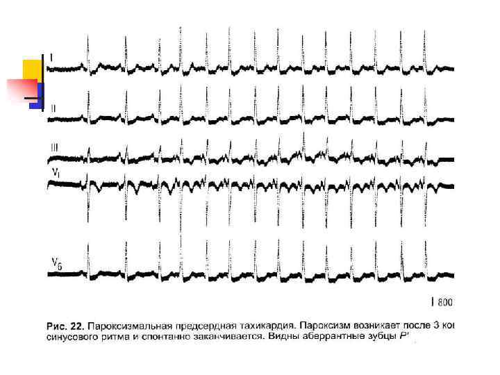 БЛОКИРОВАННЫЕ ПРЕДСЕРДНЫЕ ЭКСИРАСИСТОЛЫ. II КРИТЕРИИ: • Внеочередной несинусовый Р, за которым не следует комплекс QRS ЧЕРЕЗ AV-УЗЕЛ, НАХОДЯЩИЙСЯ В ПЕРИОДЕ РЕФРАКТЕРНОСТИ, ПРЕДСЕРДНАЯ ЭС НЕ ПРОВОДИТСЯ. ЭКСТРАСИСТОЛИЧЕСКИЙ ЗУБЕЦ Р ИНОГДА НАСЛАИВАЕТСЯ НА ЗУБЕЦ Т, И РАСПОЗНАТЬ ЕГО ТРУДНО; В ЭТИХ СЛУЧАЯХ БЛОКИРОВАННУЮ ПРЕДСЕРДНУЮ ЭКСТРАСИСТОЛУ ОШИБОЧНО ПРИНИМАЮТ ЗА СИНОАТРИАЛЬНУЮ БЛОКАДУ ИЛИ ОСТАНОВКУ СИНУСОВОГО УЗЛА (SINUS-AREST).