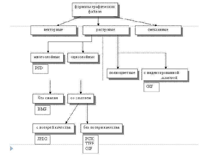Форматы графических файлов Характеристики: Коэффициент сжатия (архивации); Симметричность ; Потери качества; Классификация форматов файлов: Растровые; Векторные; Смешанные;