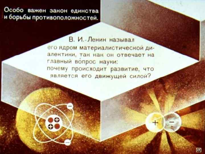 Закон единства и борьбы противоположностей (закон диалектической противоречивости) Источник развития есть разделение единого на противоположности, их борьба и разрешение в новом единстве