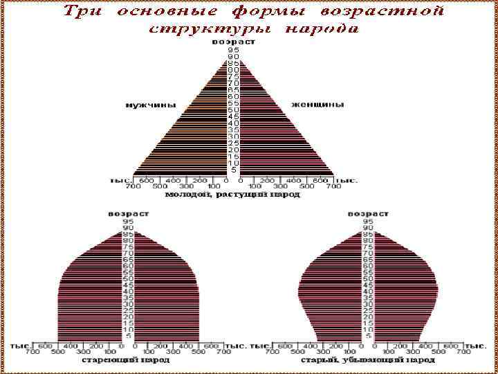 ПОЛОВОЗРАСТНАЯ ПИРАМИДА ПП - графическое изображение данных о половозрастном составе населения. Ось ординат - шкала возрастных групп (по возрастанию снизу вверх) Ось абсцисс - численность (слева - мужчины, справа - женщины).
