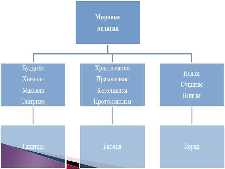 Мировая религия, распространившаяся среди народов различных стран и континентов Критерии ЮНЕСКО объединение крупной общности людей наличие последователей во многих странах и среди различных народов Современные мировые религии: буддизм христианство ислам