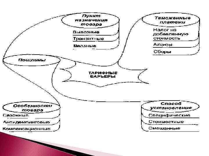 Факторы государственного регулирования внешнеэкономической деятельности Нетарифные барьеры, воздействующие на цены: Субсидии Таможенная оценка Специальные сборы Установление минимальной цены продажи товаров после их таможенной очистки Нетарифные барьеры, воздействующие на потоки товаров: Квоты Законодательные ограничения на приобретение зарубежных товаров Стандарты (на испытания, маркировку и т. д. ) Административные проволочки…
