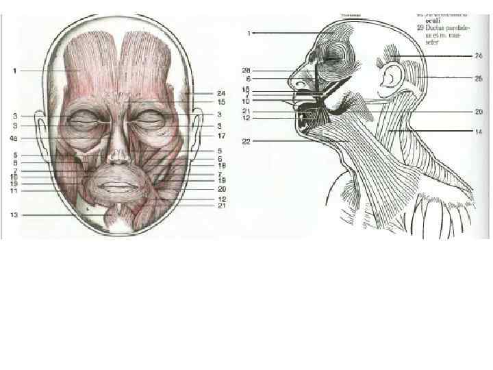 Отличия мимической мускулатуры от жевательной 1. Не имеет фасций 2. Иннервация VII парой черепных нервов