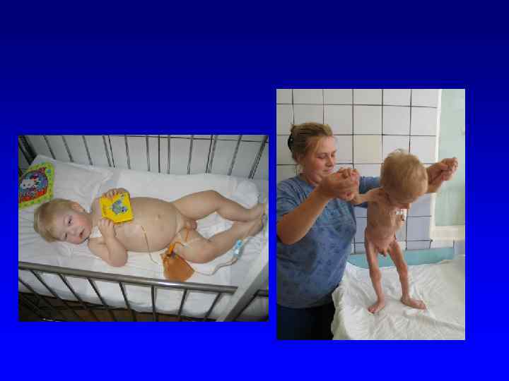 Характеристика детей • Чаще это дети с массой тела при рождении более 4000 г. • В первом полугодии характерна неравномерная прибавка массы тела (5001200 г/мес. ). • С первых месяцев жизни отмечается паратофия, пастозность, бледность кожи, снижение тургора тканей, • Задержка развития статических функций.