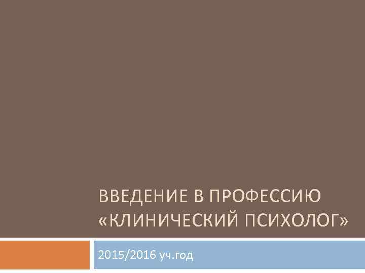 ВВЕДЕНИЕ В ПРОФЕССИЮ «КЛИНИЧЕСКИЙ ПСИХОЛОГ» 2015/2016 уч. год