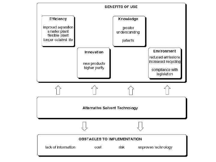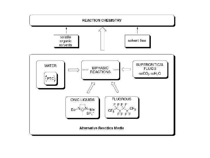 Альтернативы Ш Проведение химических процессов без органических растворителей Ш Диметилкарбонат Ш Сверхкритические среды Ш Ионные жидкости Ш Фторированные бифазные растворители All have advantages and disadvantages which need to be considered when assessing suitability for replacement