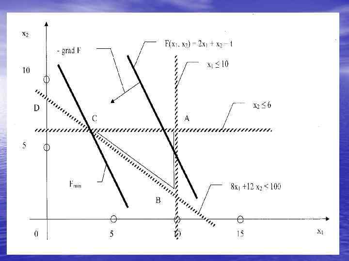 x 2 F(x)=2 x 1+x 2=24 X 1≤ 10 10 8 x 1+12 x 2≥ 100 X 2≤ 6 5 5 10 15 x 1