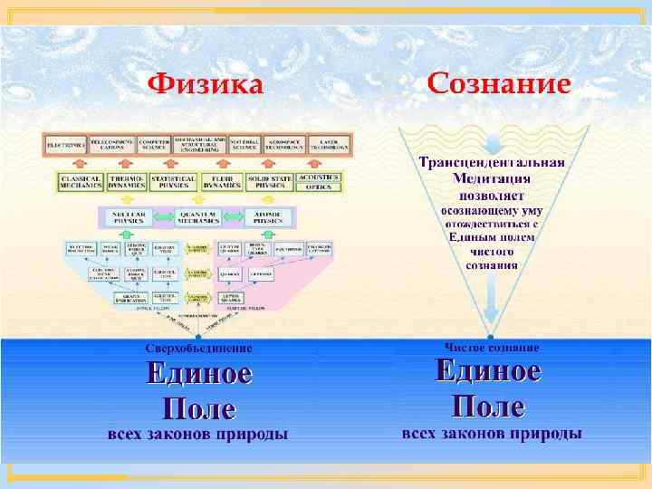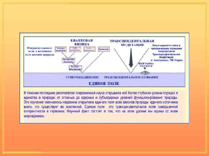 Более упорядоченное функционирование мозга Reference: Psychosomatic Medicine 46: 267, 276, 1984 Упорядоченность единого поля, отражающаяся в увеличении когерентности мозговых волн
