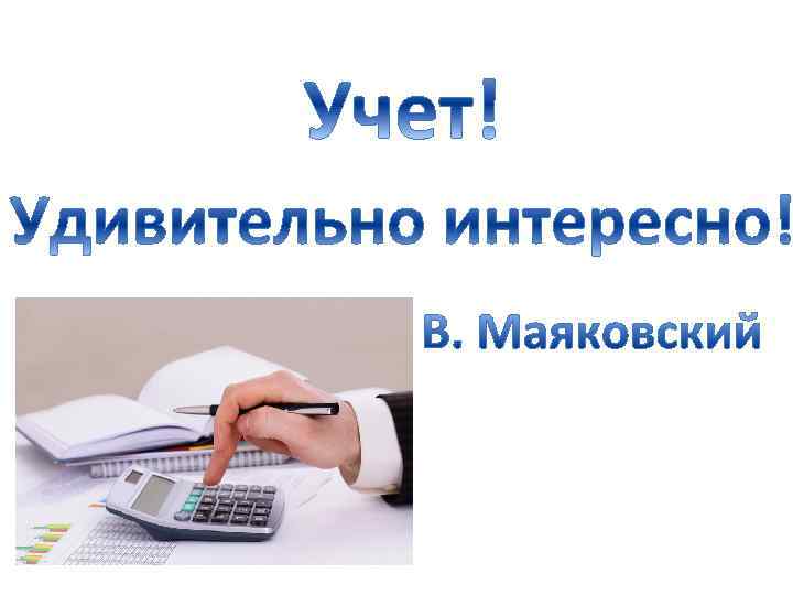 Вы бывали в бухгалтерии? Я бывал в бухгалтерии. Везде цифры и цифры, и маленькие, и большие, самые разные, а под конец все друг с другом сходятся Учет! Удивительно интересно! В. В. Маяковский