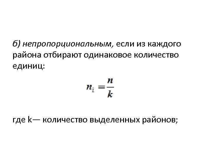 б) непропорциональным, если из каждого района отбирают одинаковое количество единиц: где k— количество выделенных районов;