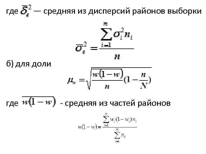 где — средняя из дисперсий районов выборки б) для доли где средняя из частей районов