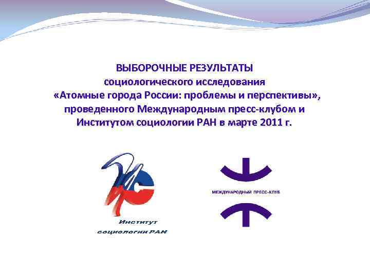 ВЫБОРОЧНЫЕ РЕЗУЛЬТАТЫ социологического исследования «Атомные города России: проблемы и перспективы» , проведенного Международным пресс-клубом и Институтом социологии РАН в марте 2011 г.