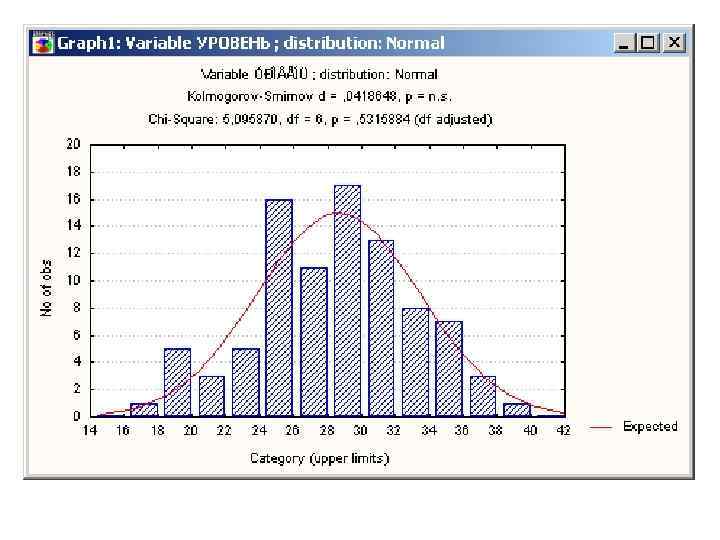 Соответствие теоретического и эмпирического распределений. • Для определения типа распределения по выборочным данным используются как количественные, так играфические методы. • Простейший способ - построение по имеющейся выборке гистограммы относительных частот и кривой плотности нормального распределения. Значительные отклонения от нормальности (сильная асимметрия, бимодальность) легко обнаруживаются на графике.