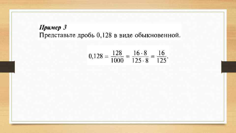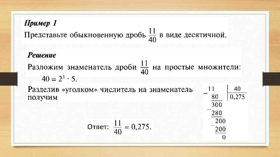 Что такое десятичная дробь? • Правильную дробь, знаменатель которой равен 10, 1000 и т. д. , можно записать в виде конечной десятичной дроби. Какие ещё дроби можно представить в виде конечных десятичных дробей? - Дроби, знаменатели которых при разложении на простые множители содержат только числа 2 и 5 в различных степенях.