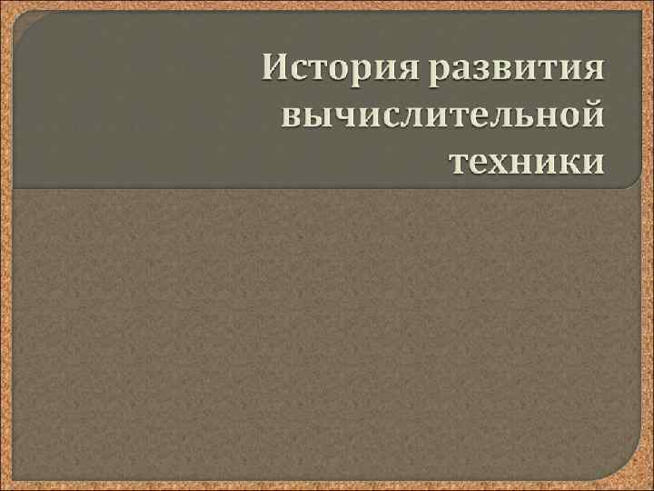 Вычисления в доэлектронную эпоху ЭВМ первого поколения ЭВМ второго поколения ЭВМ третьего поколения Персональные Современные компьютеры супер-ЭВМ