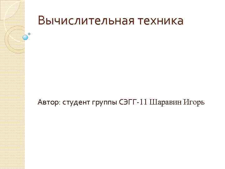 Вычислительная техника Автор: студент группы СЭГГ-11 Шаравин Игорь