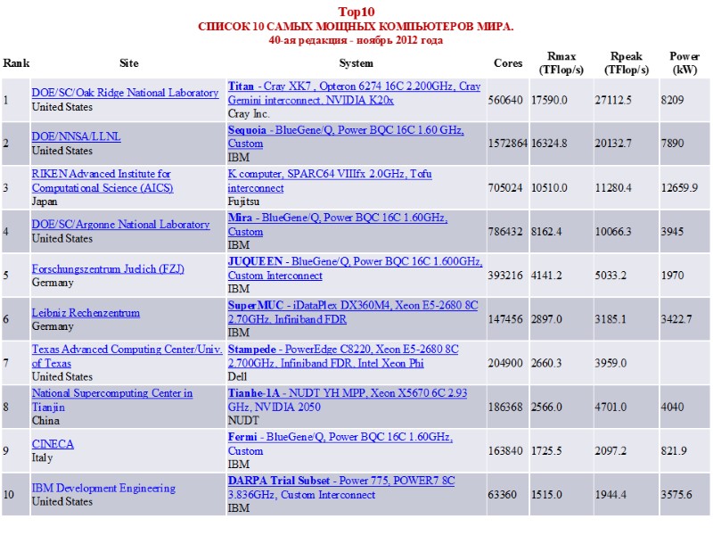 Список 10 самых мощных компьютеров мира. 37-ая редакция