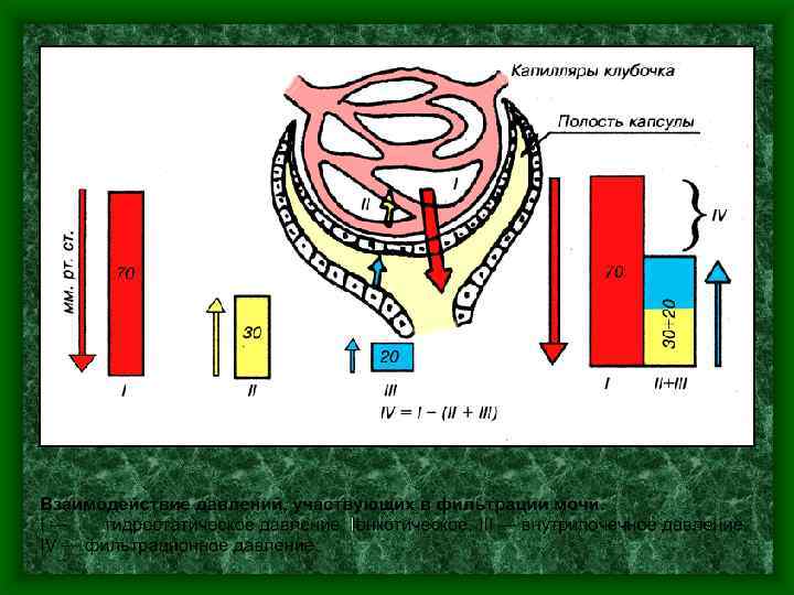 Фильтрационное давление Р фильтрационное = Р гидростатическое – (Р онкотическое + Р мочи) Рфильтр. =70 – (30 + 20)=20 мм рт. ст.