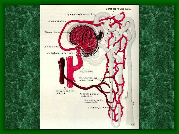 Элементы нефрона. • 1. Почечное (мальпигиевое) тельце (сосудистый клубочек и капсула). • 2. Почечные канальцы (извитой и прямой проксимальный, петля Генле прямой и извитой дистальный). • 3. Собирательная трубочка.