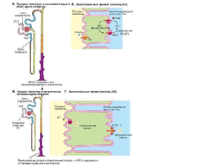 Локализация реабсорбции и секреции веществ в различных частях почечного канальца