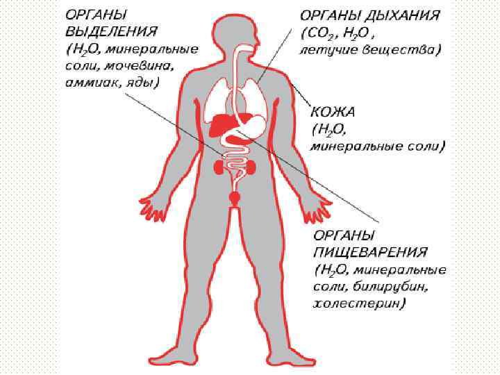 Выделение n Выведение из организма конечных продуктов обмена веществ, избытка воды, солей, ядов, образовавшихся в организме или поступивших с пищей. n Это важнейшая составная часть обмена веществ, завершение процесса, начинающегося в момент поступления пищи в организм.