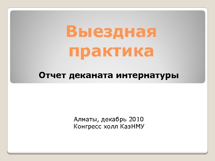 Выездная практика Отчет деканата интернатуры Алматы, декабрь 2010 Конгресс холл Каз. НМУ