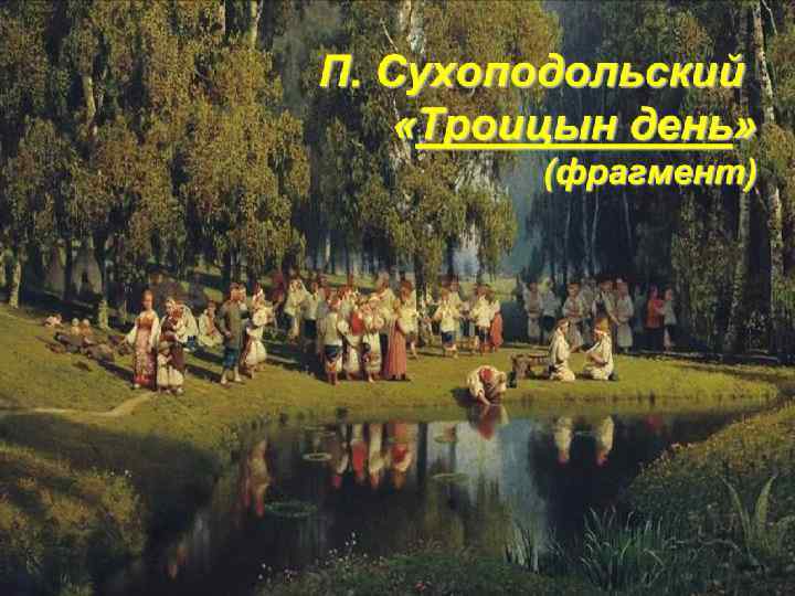 Летние праздники Троица – зеленые святки В центре праздника – обряды с березкой. Можно отметить, что он был наиболее богат календарно-обрядовыми песнями, играми, хороводами. Праздновалась через семь недель после Пасхи. Обряд кумления