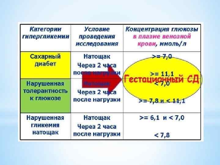 *Са харный диабе т бере менных (гестацио нный са харный диабе т) — состояние, характеризующееся гипергликемией, возникающей на фоне беременности у некоторых женщин и обычно спонтанно исчезающее после родов.