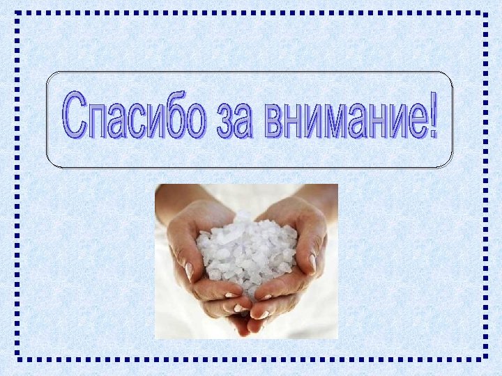 Использованная литература 1. 2. 3. 4. 5. 6. 7. 8. http: //seasalt. com. ua/interesno-o-soli/istoriya-soli - История соли. Интересно о соли http: //www. o-soli. ru - Соль: история и факты http: //www. chernetskaya. ru/blog/4015 - Каменная соль и другие виды соли. http: //gotovimvse. com/recipes/274/ - Виды поваренной соли http: //www. inflora. ru/diet 148. html - Соль. Польза и вред соли. Значение соли для организма человека. Виды соли. http: //www. goodsmatrix. ru/articles/44. html - Соль: белое золото или белая смерть? http: //www. inguide. ru/data/library/kodolaarticles/salt. php - Всё о соли http: //erudit-menu. ru/plugins/dif_news. php? 0. view. 701 - Интересные факты о соли