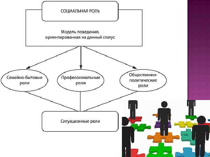 Статус- положение, которое человек (или социальная группа) занимает в обществе. Роль- совокупность требований, которые предъявляются обществом к лицам, занимающим конкретную социальную позицию.