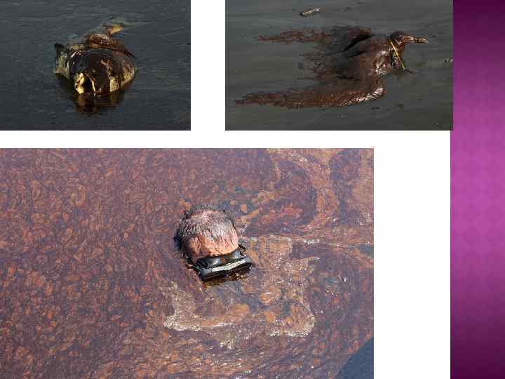 Покрытое нефтью тело мертвого дельфина лежит на земле в Венеции, штат Луизиана. Этого дельфина заметили и подобрали во время облета над юго-западной областью на реке Миссисипи. "Когда мы нашли этого дельфина, он был буквально нашпигован нефтью. Нефть просто выливалась из него. " - рассказывают рабочие-контрактники, которые помогают нефтяникам очищать берег.