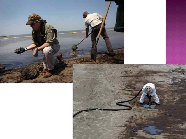 Ликвидация последствий После того как платформа Deepwater Horizon затонула, стали предприниматься попытки загерметизировать скважину, а позднее началась ликвидация последствий разлива нефти и борьба с распространением нефтяного пятна. Специалисты практически сразу после аварии поставили заглушки на повреждённую трубу и начали проводить работы по установке стального купола, который должен был накрыть повреждённую платформу и предотвратить разлив нефти. Для ликвидации последствий были подняты буксиры, баржи, спасательные катера, подводные лодки компании BP. Им помогали суда, самолёты и военно-морская техника ВМФ и ВВС США. В ликвидации последствий участвовало более 1000 человек, привлечены около 6000 военнослужащих Национальной гвардии США. Для ограничения площади нефтяного пятна было применено распыление диспергентов (активных веществ, применяющихся для осаждения нефтяных пятен). Также были установлены боновые заграждения, локализующие зону разлива. Применялся механический сбор нефти, как с помощью специальных судов, так и ручным способом — силами добровольцев на побережье США. Кроме того, специалисты решили прибегнуть к контролируемому выжиганию нефтяных пятен.