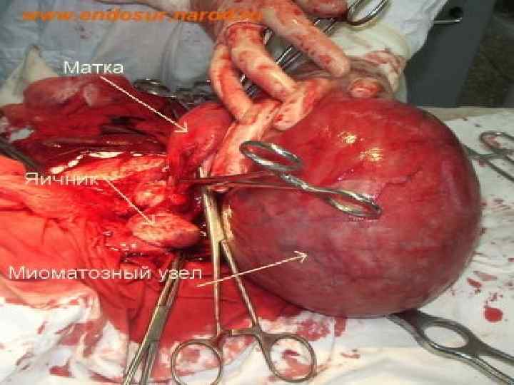 Основными показаниями для направления на операцию с целью лечения миомы являются следующие факторы: • • • миоматозные узлы больших размеров (больше 12 недель беременности); за короткий период произошло слишком резкое увеличение (быстрый рост) миоматозных узлов; выраженный болевой синдром, сопровождающий миому матки, который с течением времени может привести к потере трудоспособности женщины; миома матки в сочетании с эндометриозом или опухолью яичника. В подобных случаях одно заболевание создает благоприятные условия для быстрого развития другого и успешное лечение эндометриоза возможно лишь при предварительном удалении миоматозных узлов; нарушение питания миоматозного узла, его некроз. Для подобного состояния характерны жалобы на болезненность матки при пальпации. Некроз миомы сопровождается такими общими симптомами, как чувство усталости, повышенная температура, острые боли, часто заставляющие женщину соблюдать постельный режим; давление миомы на мочевой пузырь или прямую кишку, что приводит к функциональным нарушениям в организме; наличие субмукозного узла, что само по себе служит серьезным поводом для оперативного вмешательства даже без предварительных попыток применения терапевтического метода лечения миомы матки; злокачественное перерождение узла; сочетание фибромиомы с истинной опухолью яичника.