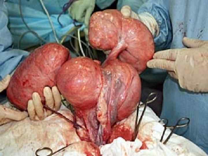 Органосохраняющей операции • • • Лапароскопическая миомэктомия – удаление миомы матки с помощью лапароскопа (инструмент, вводимый в брюшную полость через небольшие разрезы на передней брюшной стенке). Преимущества лапароскопической миомэктомии: сохранение матки и возможность забеременеть в будущем, быстрое восстановление после операции. Недостатки лапароскопической миомэктомии: после удаления миомы матки есть вероятность появления новых узлов миомы матки (рецидив), а рубцы на матке после операции требуют повышенного внимания к женщине в случае беременности. Лапаротомическая миомэктомия – операция по удалению миомы матки через разрез на передней брюшной стенке. Этот вид лечения применяется редко, вследствие длительного восстановления после операции. Гистероскопическая миомэктомия – удаление миомы матки с помощью гистероскопа (инструмента, вводимого в полость матки через влагалище). Гистероскопическая миомэктомия показана при субмукозной миоме матки (миома, которая растет в просвет полости матки).