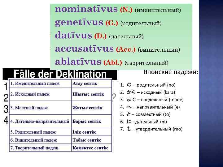 Прямой Падеж Косвенные ►Именительный ►Родительный ► Иногда винительный ►Дательный ►Творительный ►Предложный