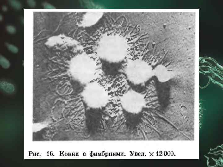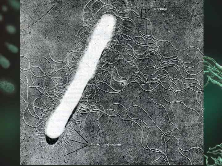 Фимбрии бактерий n n Многие грамотрицательные бактерии имеют длинные и тонкие микроворсинки, пронизывающие клеточную стенку. Образующие их белки формируют спиралевидную нить. Основная функция — прикрепление бактерий к субстратам (например, к поверхности слизистых оболочек), что делает их важным фактором колонизации и патогенности.
