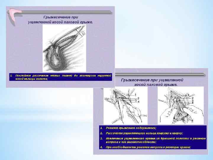 *В остальных случаях показана операция грыжесечения. Перед операцией промывают желудок и берут все необходимые анализы. Операцию производят под наркозом, объем ее зависит от изменений, происшедших в содержимом грыжевого мешка. При некрозе участка кишки, сальника или яичника их удаляют. Если произведена резекция кишки с наложением анастомоза, проводят дренирование брюшной полости. В послеоперационном периоде, кроме пузыря со льдом, накладываемого на область раны, под мошонку следует подложить валик, так как обычно в послеоперационном периоде возникает отек мошонки. При массивном отеке мошонки полезны примочки с охлажденным раствором фурацилина.