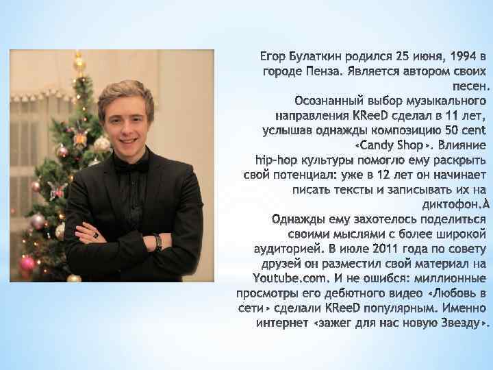 Егор Выступает на самых масштабных площадках России и не только! Недавно снялся в передаче на 1 канале )Ещё он ведёт передачи на известных телеканал таких как Ру-тв ; Муз-тв