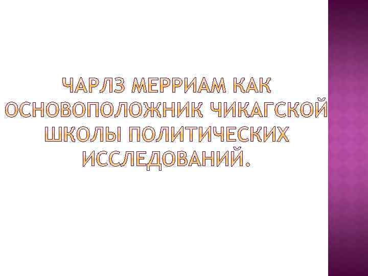 Ч. Мерриам (1874— 1953) является одним из создателей современной политической науки. В течение 17 лет он возглавлял отделение политической науки в Чикагском университете, в рамках которого сформировалась чикагская школа политических исследований.
