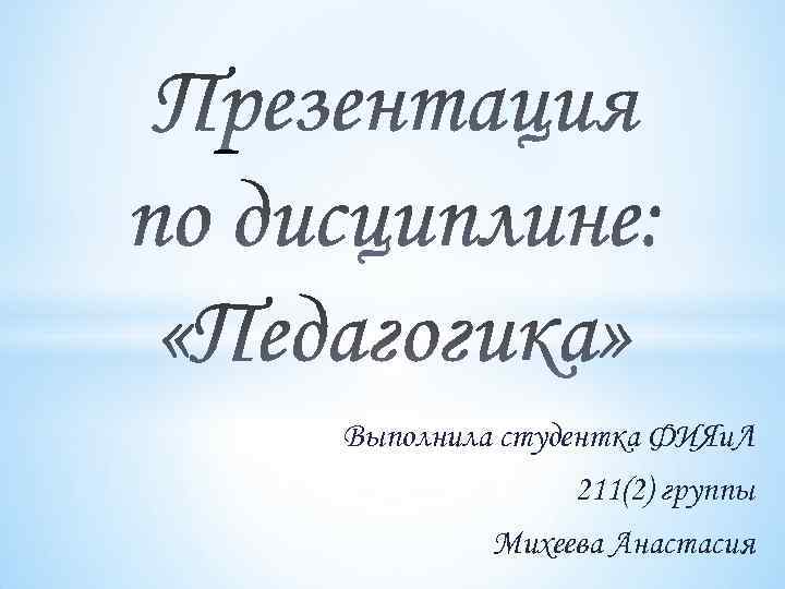 Выполнила студентка ФИЯи. Л 211(2) группы Михеева Анастасия