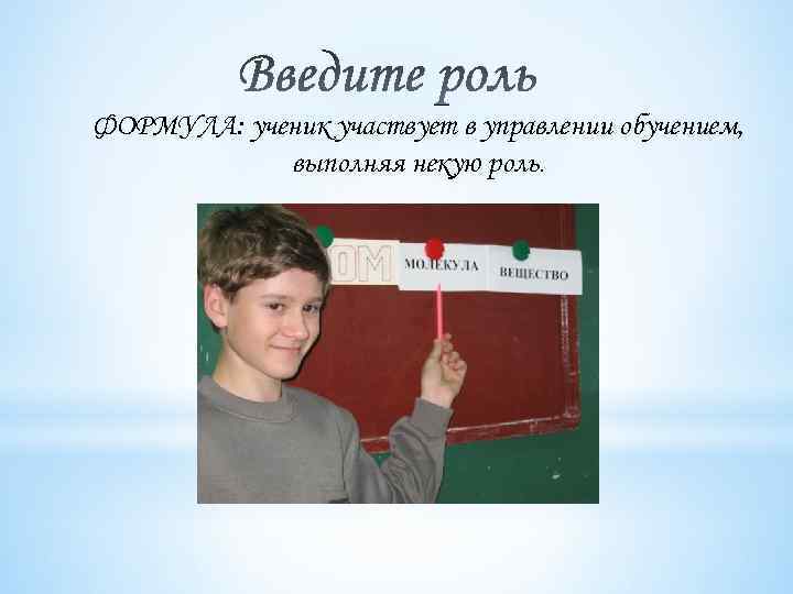 ФОРМУЛА: ученик участвует в управлении обучением, выполняя некую роль.