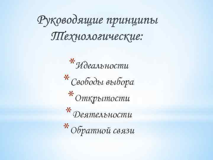 *Идеальности *Свободы выбора *Открытости *Деятельности *Обратной связи
