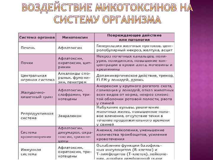 метаболиты микроскопических плесневых грибов особо опасные токсические вещества, загрязняющие корма и пищевые продукты. Обладают токсическим эффектом в чрезвычайно малых количествах и способны весьма интенсивно диффундировать вглубь продукта.
