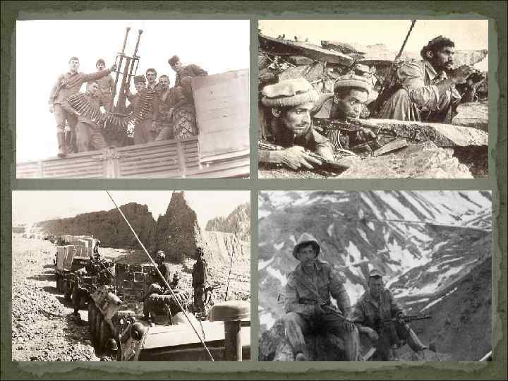 После Апрельской революции в Афганистане 27 апреля 1978 г. левые военные передали власть Народно-демократической партии. Не пользуясь прочной поддержкой в народе, новое правительство жестоко подавляло внутреннюю оппозицию. Волнения в стране и распри внутри НДП подтолкнули советское руководство к вводу в декабре 1979 г. войск в Афганистан под предлогом предоставления интернациональной помощи. Ввод советских войск на территорию Афганистана начался на основании постановления Политбюро ЦК КПСС и просьбы руководства Афганистана и лично Хафизуллы Амина об оказании стране военной помощи для борьбы с антиправительственными силами. Моджахеды Хафизулла Амин