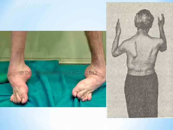 * Для бокового амиотрофического склероза характерно сочетанное поражение нижнего мотонейрона (периферического), что проявляется вялым параличом и такими признаками, как: * Мышечная слабость ( парезы ). * Гипорефлексия (снижение рефлексов). * Мышечные атрофии. * Фасцикуляции (спонтанные, быстрые, неритмичные сокращения пучков мышечных волокон). * И поражением верхнего мотонейрона (пирамидных путей и/или пирамидных клеток двигательной коры головного мозга), что проявляется спастическим параличом, и такими признаками, как: * Мышечная слабость (парезы). * Спастичность (повышение мышечного тонуса). * Гиперрефлексия (повышение рефлексов). * Патологические стопные и кистевые знаки.