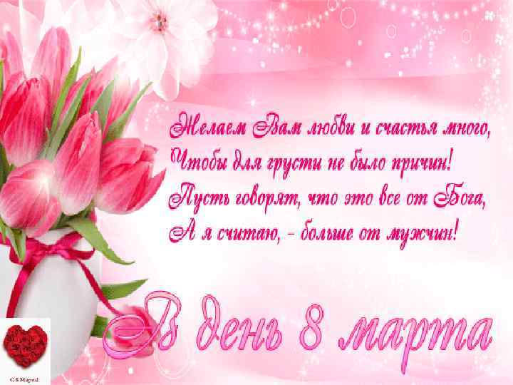 • Есть много праздников • в стране, • Но женский день отдан Весне, • Ведь только женщинам подвластно • Создать весенний праздник - лаской.