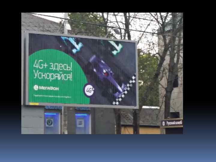 Место: Московский проспект. Место выбрано удачно – правая сторона дороги, хорошо воспринимается проезжающим водителям и проходящим пешеходам Сторона движения: А Конструкция: динамичная; Носитель: Призмавижн Шрифт и текст: читабельный, простой, не перегружен информацией. Цвета: сочетаются; Используются фирменные цвета (зеленый и белый), логотип Посыл: призыв ( «Ускоряйся!» ) Удачное рекламное обращение: рекламное обращение простое, понятное, для визуального восприятия не затруднено. Ясен основной посыл и сразу понятно о чем идет речь, информирование об услугах. Слоган – «Ускоряйся!» сочетается с изображением. Указана организация ( «Мегафон» ) Оценка эффективности рекламного обращения: 8