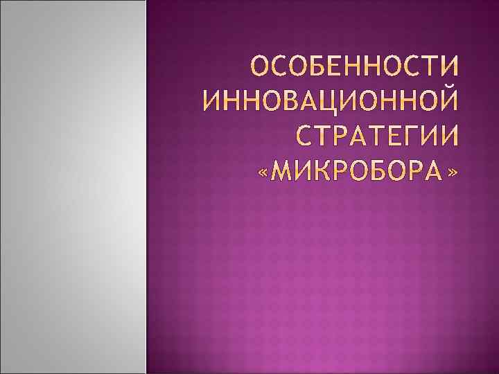 Глобализация (низкая – высокая) Синергия рынков (низкий – высокий) Локальный мультипродуктовый рынок • Локальный монопродуктовый рынок Глобальный мультипрод. рынок • Глобальный монопродуктовый рынок «Микробор»